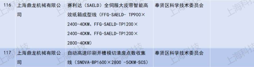經(jīng)受理審核、專家評(píng)審和社會(huì)公示等多個(gè)程序,上海鼎龍機(jī)械有限公司的賽利達(dá)全伺服大皮帶智能高效紙箱成型線、自動(dòng)高速印刷開槽模切清廢點(diǎn)數(shù)收集線,憑借強(qiáng)大的新質(zhì)生產(chǎn)力,順利通過(guò)2024年第一批上海市高新技術(shù)成果轉(zhuǎn)化項(xiàng)目認(rèn)定!